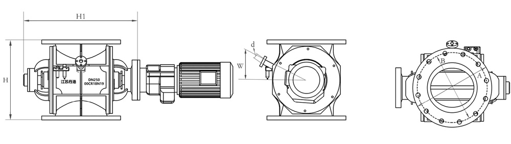 | DN | B | A | H | L1 | d | W | 转子容积 | 电机功率 | 重量 |